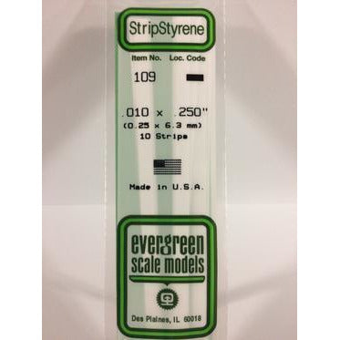Evergreen #109 Styrene Strips: Dimensional 10 pack 0.010" (0.25mm) x 0.250" (6.3mm) x 14" (35cm)