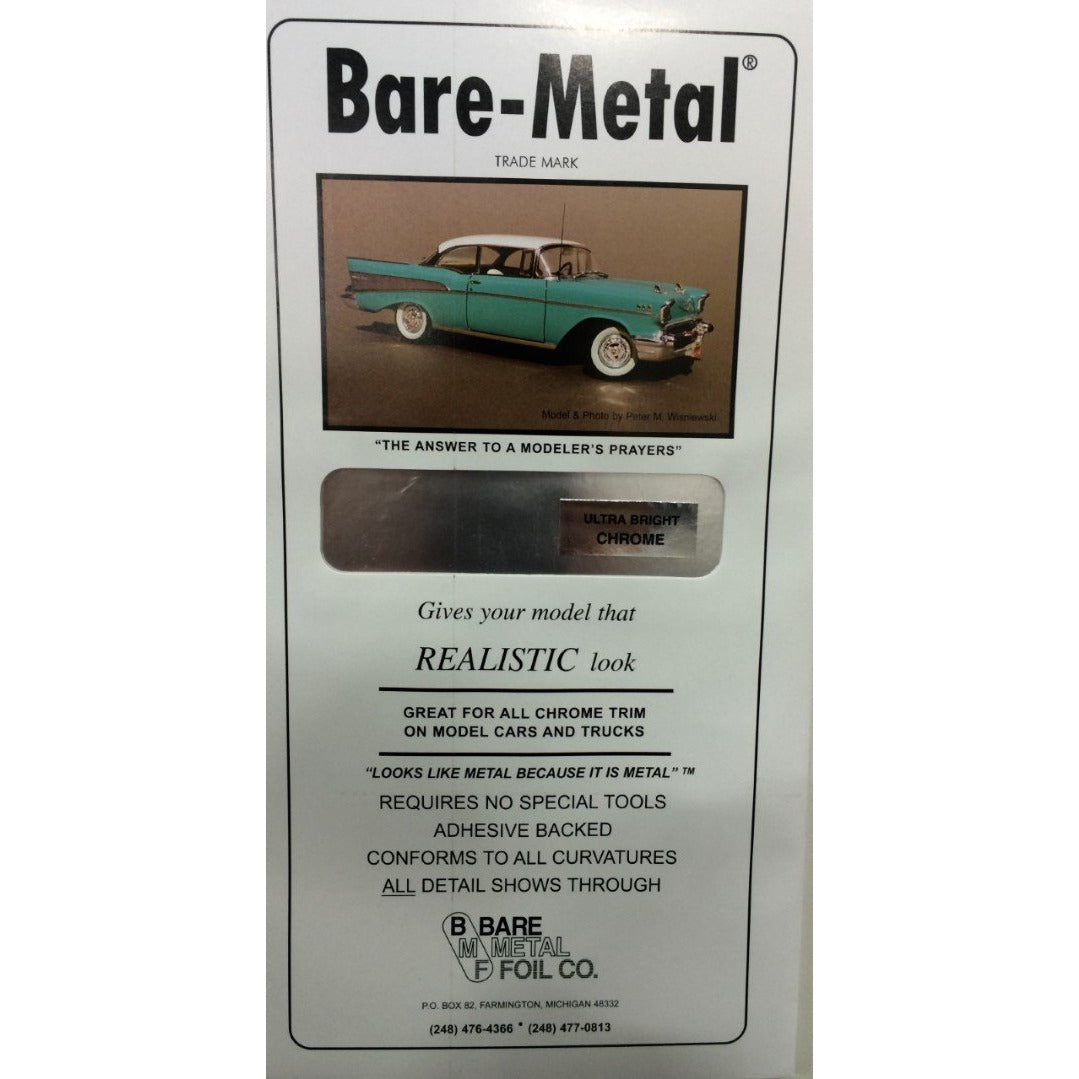 Bare-Metal Foil is perfect for duplicating chrome on model cars, model trucks, and model aircraft. Bare-Metal also looks great on die cast models. You can use Bare-Metal any place that real metal would add detail to a finished kit. Bare-Metal Foil is a thin metal foil with a self-adhesive backing. Bare-Metal can be applied to painted surfaces or plain plastic. Plus since Bare-Metal Foil is so thin it conforms to compound curves.