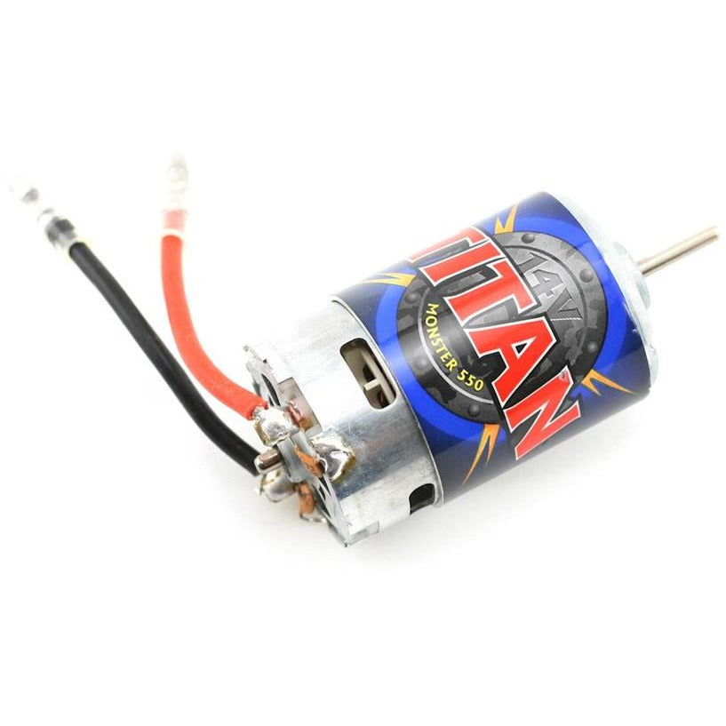 The Titan 550 is a 21-turn fan-cooled 550 size motor capable of handling 14.4 volts. This powerful motor has a 30% longer armature than a standard 540 size motor for extreme monster torque.