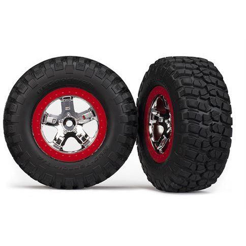 Tires & wheels, assembled, glued (SCT chrome, red beadlock style wheels, BFGoodrich Mud-Terrain T/A KM2 tires, foam inserts)