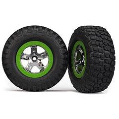 Tires & wheels, assembled, glued (SCT, chrome, green beadlock wheel, BFGoodrich® Mud-Terrain T/A® KM2 tire, foam inserts) (2) (4WD front/rear, 2WD rear only)
