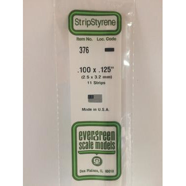 Evergreen #376 Styrene Strips: Dimensional 11 pack 0.100" (2.5mm) x 0.125" (3.2mm) x 24" (60cm)