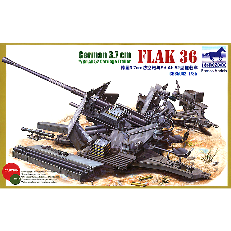 German 3.7CM Flak36 w/Sd.Ah.52 Carriage Trailer 1/35 by Bronco