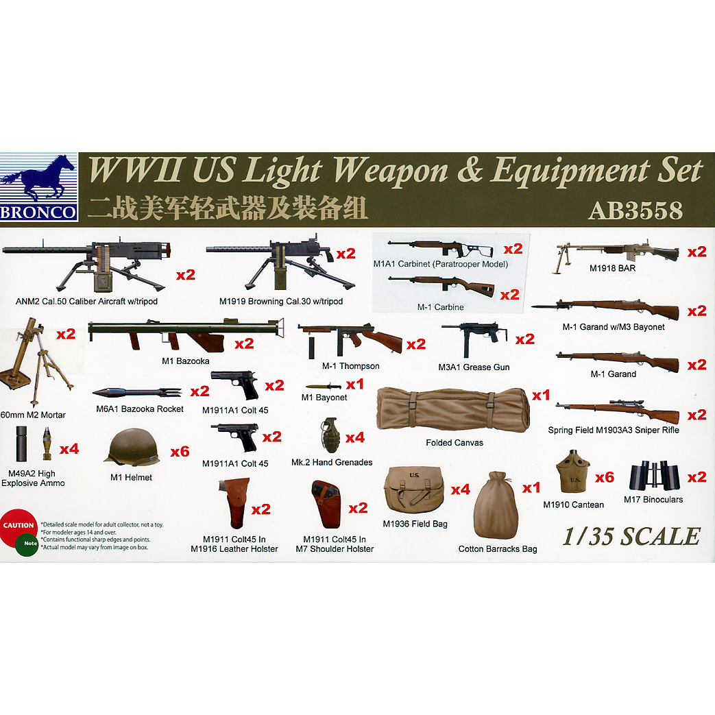 WWII US Light Weapon & Equipment Set 1/35 by Bronco