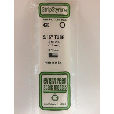 Evergreen #430 Styrene Tubes: Round 5/16" 5 pack 0.312" (7.1mm) OD x 24" (60cm)