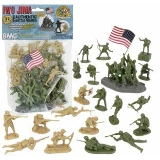 54mm Iwo Jima US Marines & Japanese Figure Playset (Olive/Tan) (32pcs) (Bagged)
