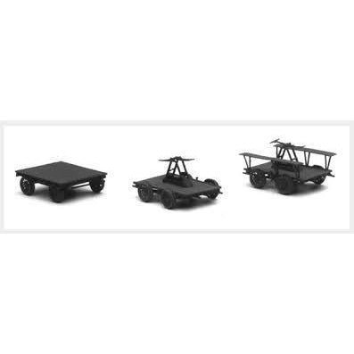 This is a undecorated 1/87 [HO] scale Maintenance - Work Train Equipment pushcar set.They are meticulously detailed injection molded plastic and feature step by step instructions with prototype information. Made in the USA
