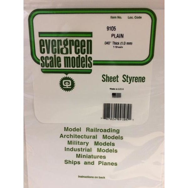 Evergreen #9105 Styrene Sheets: White 3 pack 0.040" (1.0mm) x 8" x 21"