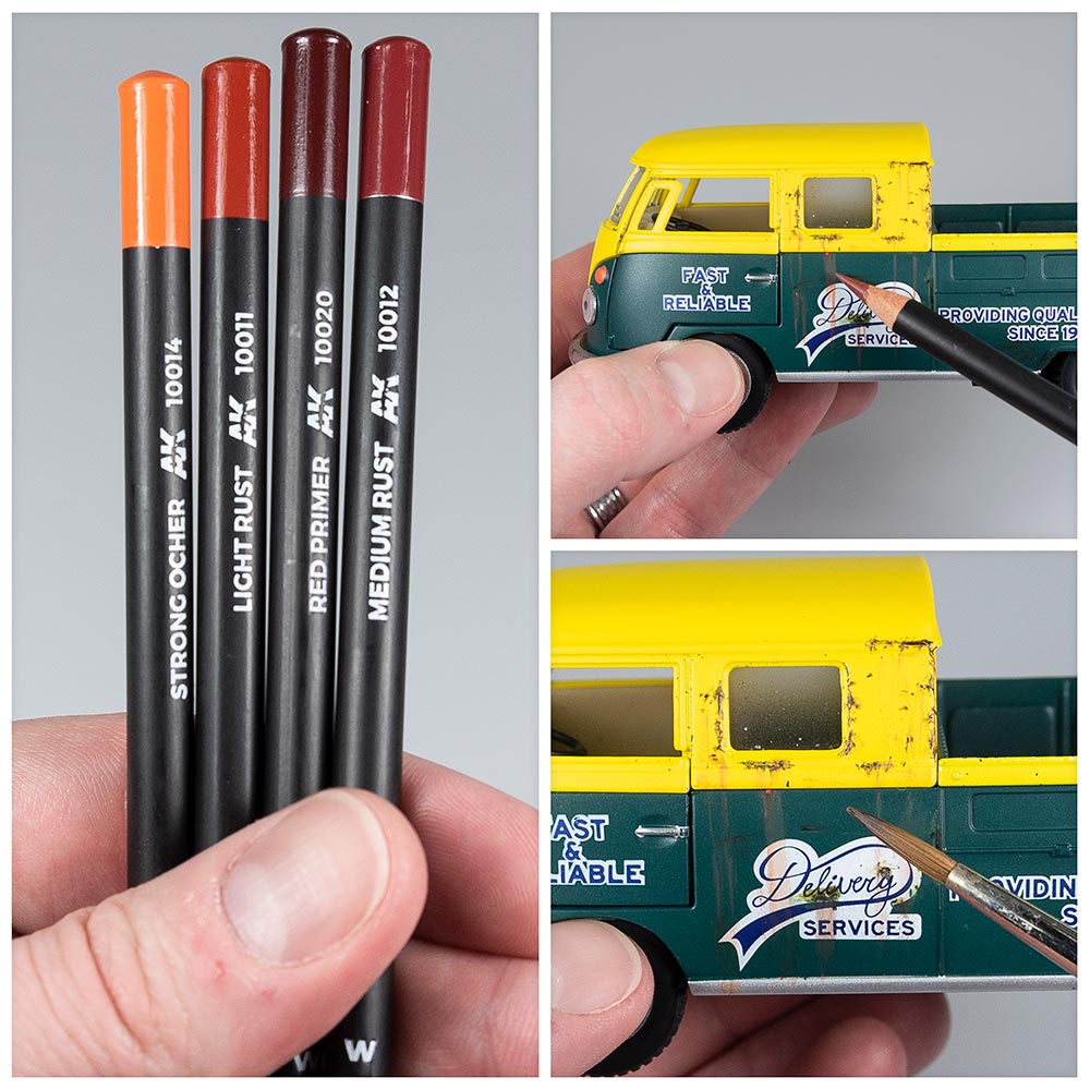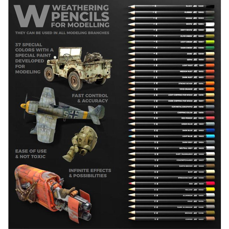 This beautiful set of 37 watercolor pencils isnâÂÂt just for show. They have some serious powers, especially when used on a matt surface. Accomplish a variety of dry effects like chipping, scratches, brushed metal, panelling and highlighting. Or, add some water or white spirits and get ready to blend for streaking, rust, smoke staining, light & shadow and dust & mud effects.ÃÂ