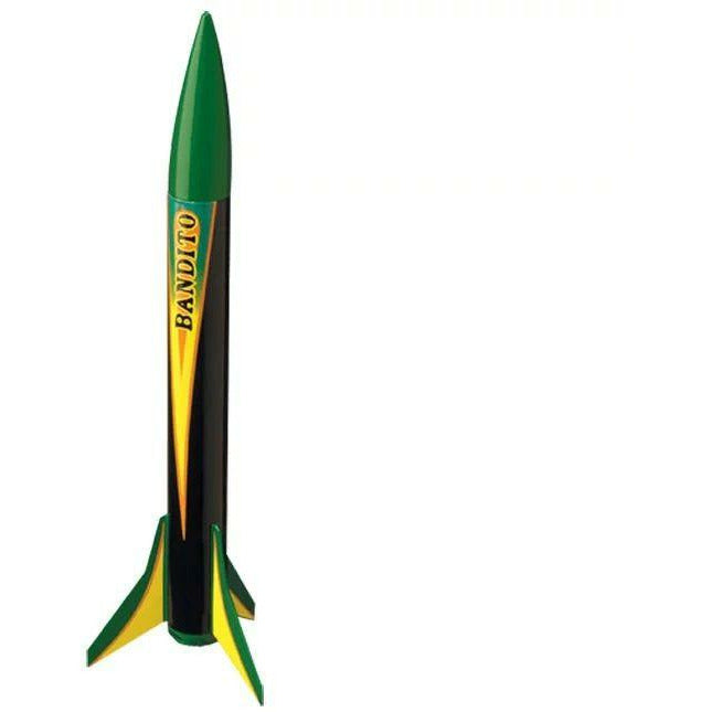 Need to spice up your next trip to the launch pad with a slick looking, high performance mini rocket? The Estes Bandito from our beginner series offers the perfect blend of both. This cool looking rocket is just a little over 11 inches tall and is aerodynamically shaped with a ballistic nose cone and radically swept fins for awesome flights to over 600 feet. This hyper velocity mini rocket is easy to build and fun to launch.
