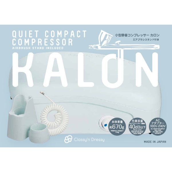 The "Kalon" air compressor from GSI Creos/Mr. Hobby features a simple and user-friendly design that achieves both sufficient airflow for airbrush painting and relatively quiet operating noise. It can be used in Japan and overseas without a transformer or converter.