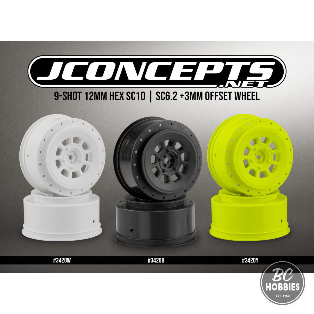 JConcepts 9-Shot Short Course Wheels w/3mm Offset (2) w/12mm Hex - Assorted Colours