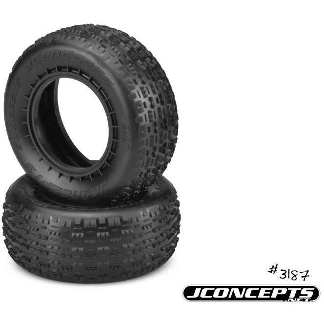 JConcepts Swaggers Carpet Short Course Front Tires feature a multitude of heights and angular ribs for cornering speed, consistency and straight-line tracking ability. The Swagger has shown to produce ultra fast lap times while also being easier to drive than other options on the market. The front tires are designed for the industry standard SCT wheels which are already available from JConcepts (JCO3344 - AE; JCO3352 - TLR). The Swaggers work best on Carpet and Astroturf tracks where the racing line requires an aggressive style front tire.