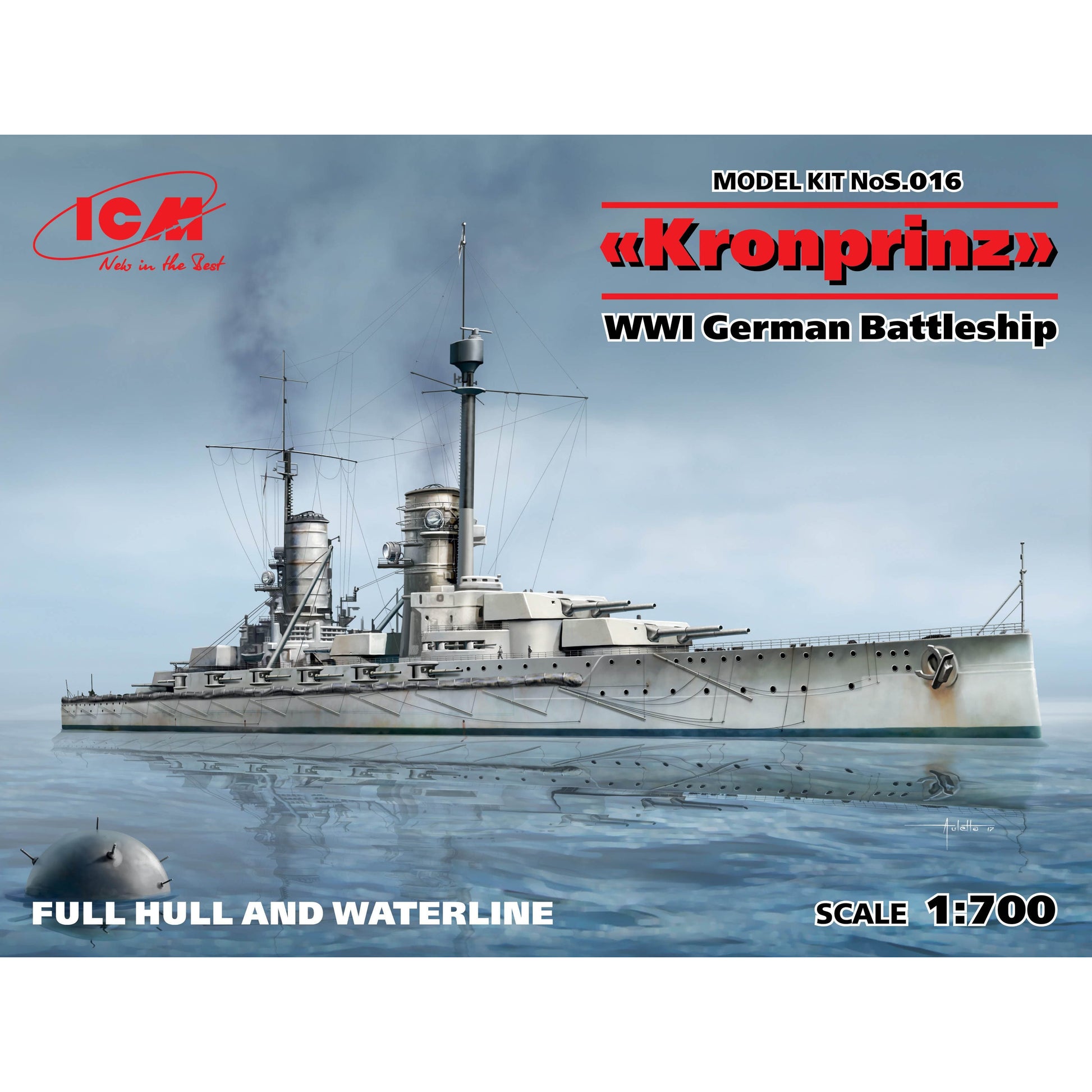 Kronprinz WWI German Battleship 1/700 w/ Full Hull and Waterline Model Ship Kit #S.016 by ICM