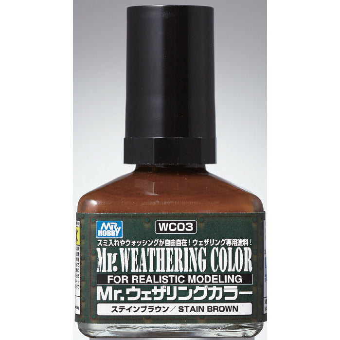 Mr. Weathering color is an oil based wash. Use on a semi-gloss surface for easy cleanup, and a matte surface for extreme weathering.