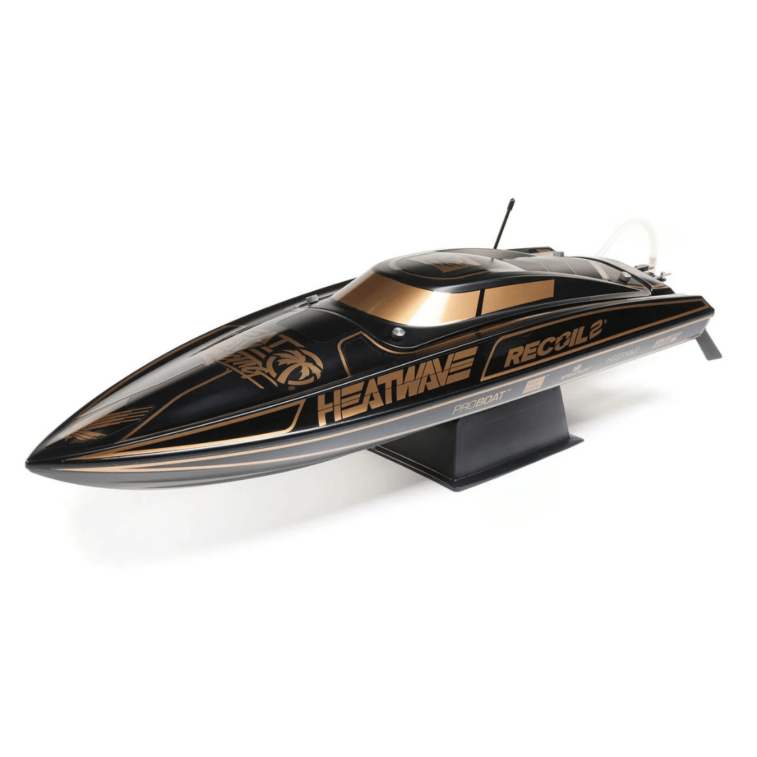 The high-impact ABS molded hull and canopy ensure toughness while the boat’s sleek, modern design stands out with custom liveries by Heatwave® and Shreddy. The aluminum offset rudder and durable aluminum propeller provide superior control and handling, while the robust Spektrum Smart 3S 3200mAh LiPo battery offers long-lasting power. Whether you're racing or simply cruising, the Recoil 2 offers exceptional performance on both calm waters and rougher terrain.
