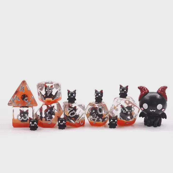 Red Demon 7pc Dice Set for TTRPG inked in Silver