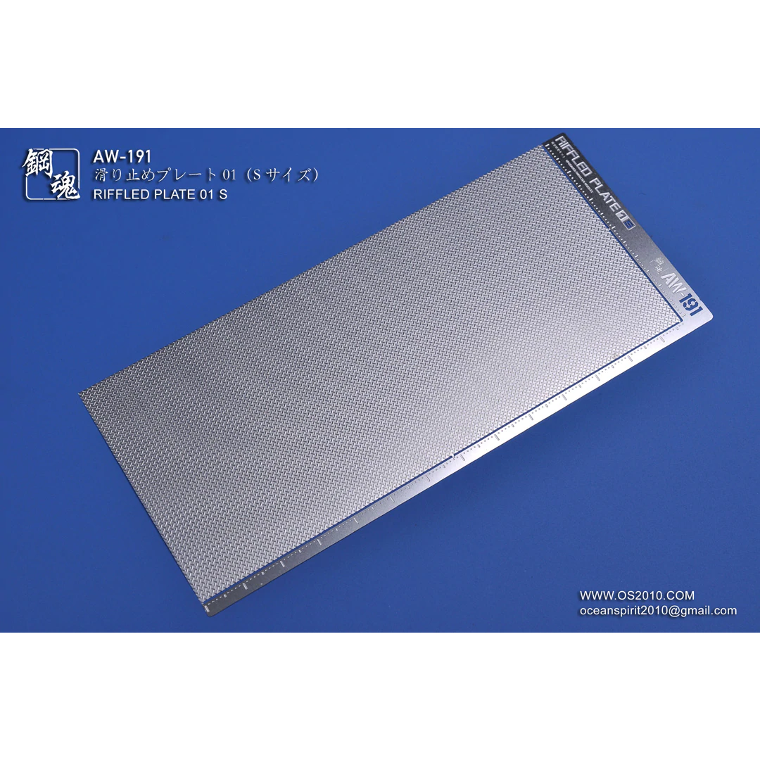 A photo-etch metal sheet of riffled/diamond/anti-slip plate for model projects.