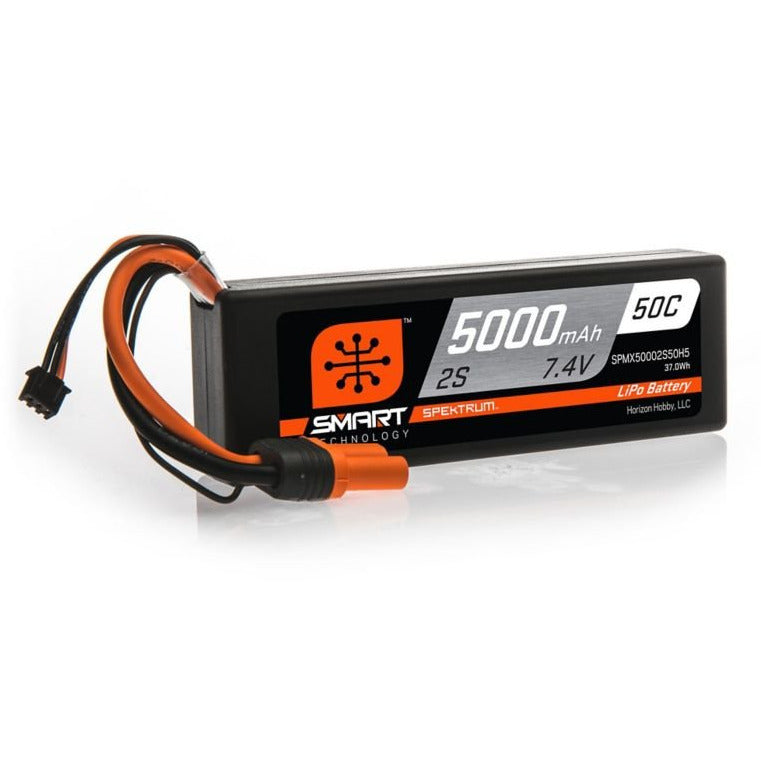 This is a Spektrum 7.4V 5000mAh 2S 50C Smart LiPo Battery with an IC5 Plug. LiPo batteries with Spektrum Smart technology practically take care of themselves. When combined with a Spektrum Smart Battery Charger, the unique parameters, history of the battery and more are all available the instant it's connected. Charging a Smart Battery is easy as it gets, plus Smart LiPo battery packs are programmable to meet your exact charging needs. But the crowning feature of a Spektrum Smart LiPo battery is that it can be programmed to safely self-discharge to storage condition. That's a Smart Battery pack!