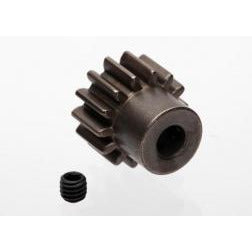 Traxxas Steel Mod 1.0 Pinion Gear w/5mm Bore (14T) (compatible with steel spur gears) 14-tooth pinion gear. Fits 5mm shaft, 1.0 metric pitch. Hardened steel for use with steel spur gears. Includes set screw.