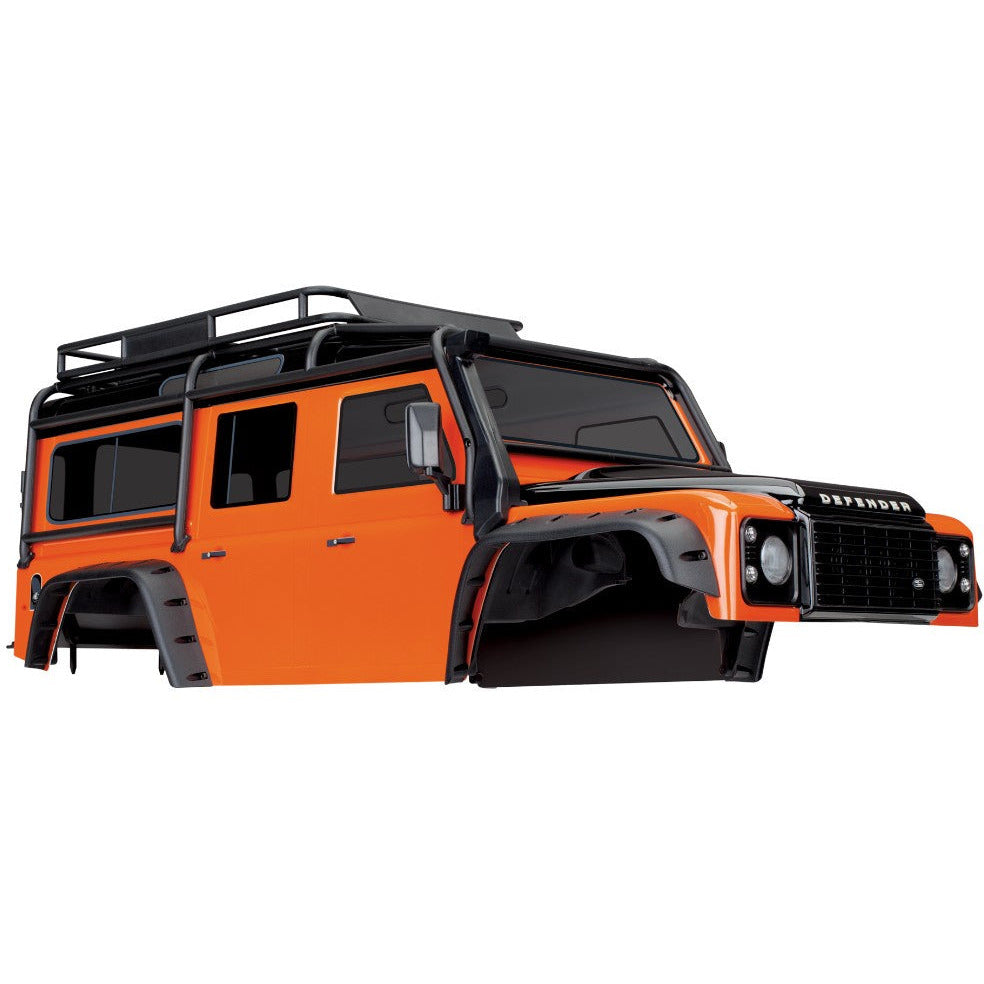 Traxxas Body, Land Rover Defender, adventure orange (complete with ExoCage, inner fenders, fuel canisters, and jack)