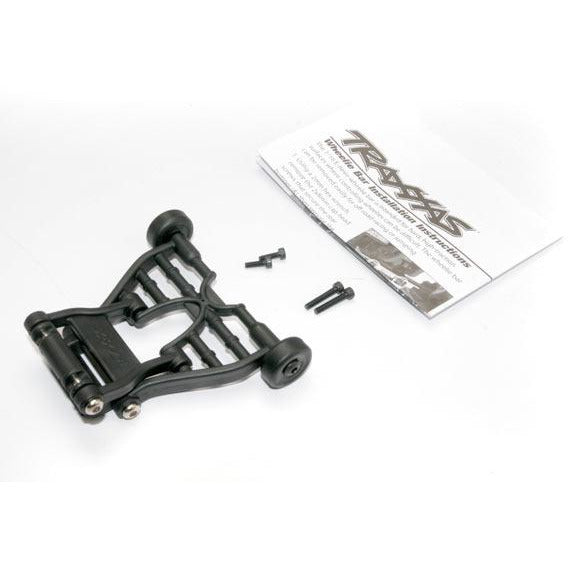 The unique patented Traxxas adjustable wheelie bar features four position adjustment, now in 1/16 scale. The 1/16 E-Revo wheelie bar is intended for hard, high-traction surfaces where controlling wheelies can be difficult. The wheelie bar can be removed easily for off-road racing or jumping.