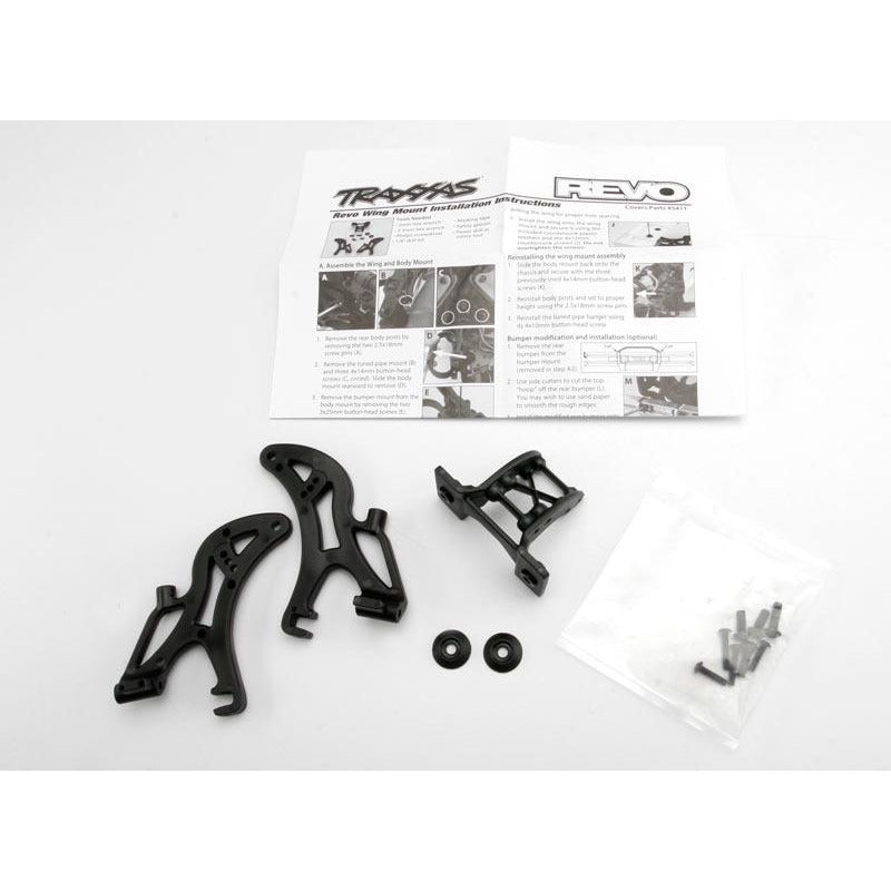 The Traxxas Revo wing and wing mount are the latest additions to the performance accessory line-up for the six-time National Champion Revo 3.3. The combination of the adjustable deflection angle, wing height, and the unique wing design allow tuning options for any track condition and driving style. The wing mount kit includes the mount, hardware, and installation instructions. The wing is available separately in white, black, or the new Exo-Carbon finish.