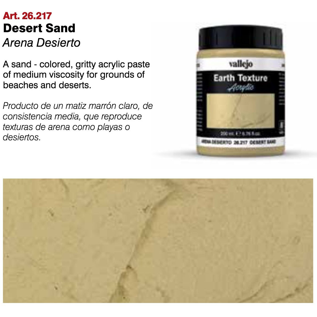 Desert Sand is a sand colored, gritty acrylic paste of medium viscosity for grounds of beaches and deserts.